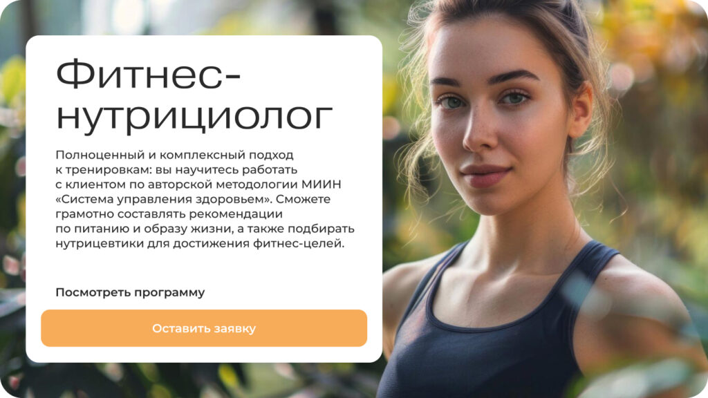 Узнать, как правильно питаться, чтобы поддерживать организм в режиме активных тренировок, и как быстро и безопасно восстановить организм после них, можно на курсе «Фитнес-нутрициолог» от Международного института интегративной нутрициологии.