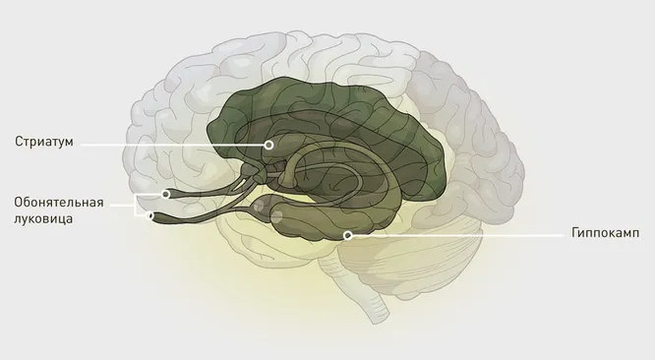 Обонятельная луковица — участок мозга, который распознает запахи, напрямую связана с двумя ключевыми зонами лимбической системы: