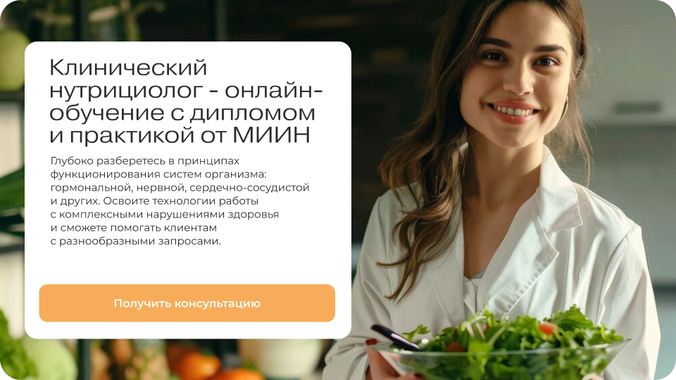 Питание для здоровья глаз — не отдельная тема, а часть системного взгляда на нутрициологию. Курс МИИН «Клинический нутрициолог» дает инструменты для работы с питанием на доказательной основе — от механизмов усвоения нутриентов до составления рационов под конкретные задачи.